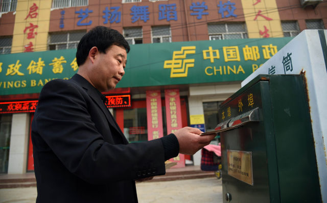 3月20日,張景憲將新一批寫好的信件投到信箱里準(zhǔn)備寄出。