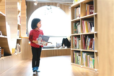 繪本圖書館里,孩子坐在家長身旁,捧著手中的書讀得津津有味。場館設計之初,王慧瑾親自“操刀”,定下了原木簡約風格的主基調(diào),就是為了滿足家長的高品質審美需求,力圖打造一個家長和孩子都可以樂在其中的悠閑天地。