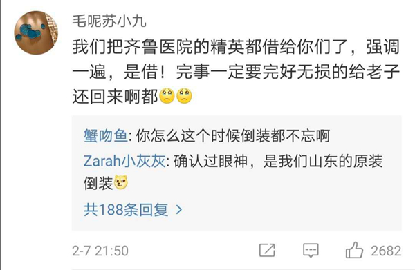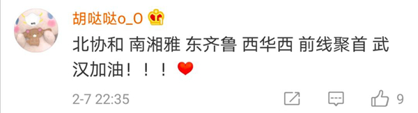 有網(wǎng)友表示,北協(xié)和、南湘雅、東齊魯、西華西,中國(guó)醫(yī)療界最頂尖的王炸帶上各省份的天團(tuán)會(huì)師武漢!今天看到最戳心的一句話是:全村的龍已把最硬的麟給你,哪怕自己也傷痕累累,所以,武漢,加油!