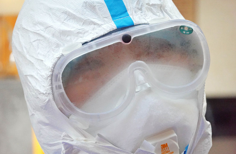 每次出門采訪都如臨大敵:先換好外出的衣裳、戴好醫(yī)用手套、戴好護(hù)目鏡,然后再小心翼翼地在臉上加上一個(gè)或兩個(gè)口罩,在門口換上出門的鞋,最后再背上采訪設(shè)備——每次做完這些的時(shí)候,作為胖子的我身上已經(jīng)開始冒汗并且氣喘吁吁。如果要去醫(yī)院采訪,有時(shí)候還要再穿上一件防護(hù)服。這樣的裝備,出門走一圈其實(shí)已經(jīng)很難受了,而我還要隔著不斷產(chǎn)生霧氣的護(hù)目鏡拍照,要不斷地移動(dòng)、尋找最好的拍攝角度和位置,采訪的時(shí)候更要記下一個(gè)個(gè)口罩后面的名字、故事......這樣的采訪狀態(tài)對(duì)我而言,從未曾經(jīng)歷過——多年前,我曾在利比亞做過戰(zhàn)地記者,也曾被武裝分子用槍指著腦袋,但這次在武漢,我不知道那些危險(xiǎn)的“敵人”究竟藏在何方,也許就在無(wú)處不在的空氣里!