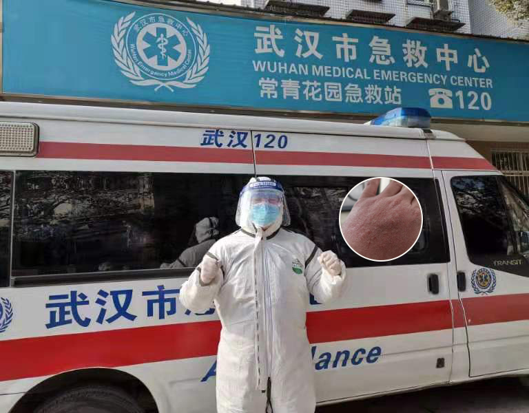 徐迪在救護(hù)車(chē)前大喊武漢要挺住、武漢加油