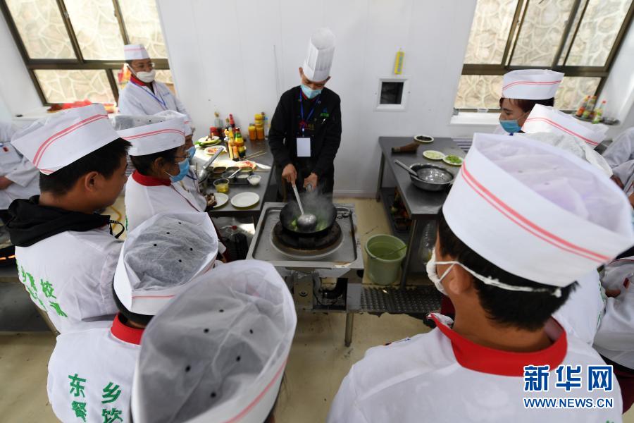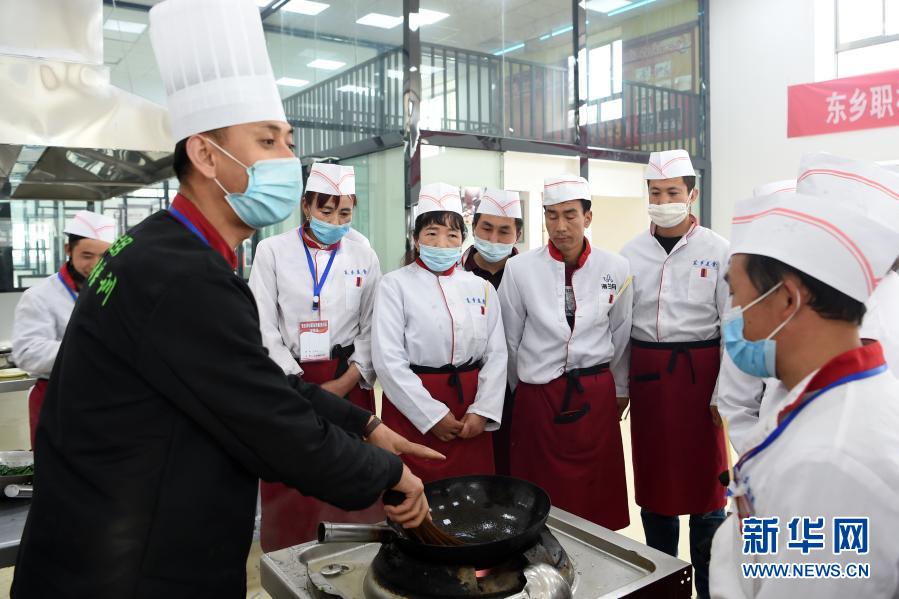 東鄉(xiāng)縣職業(yè)技術學校烹調面點培訓班學員在上課(4月21日攝)。新華社記者 范培珅 攝