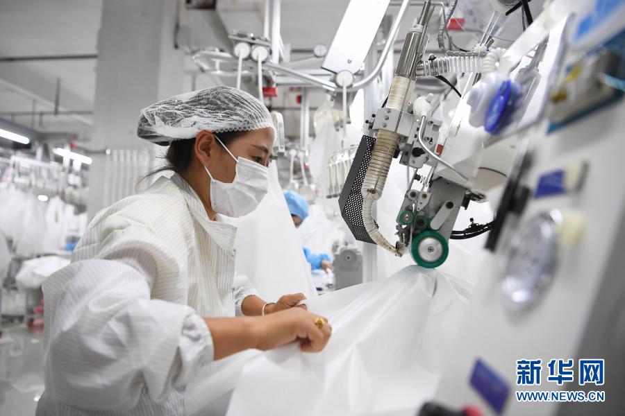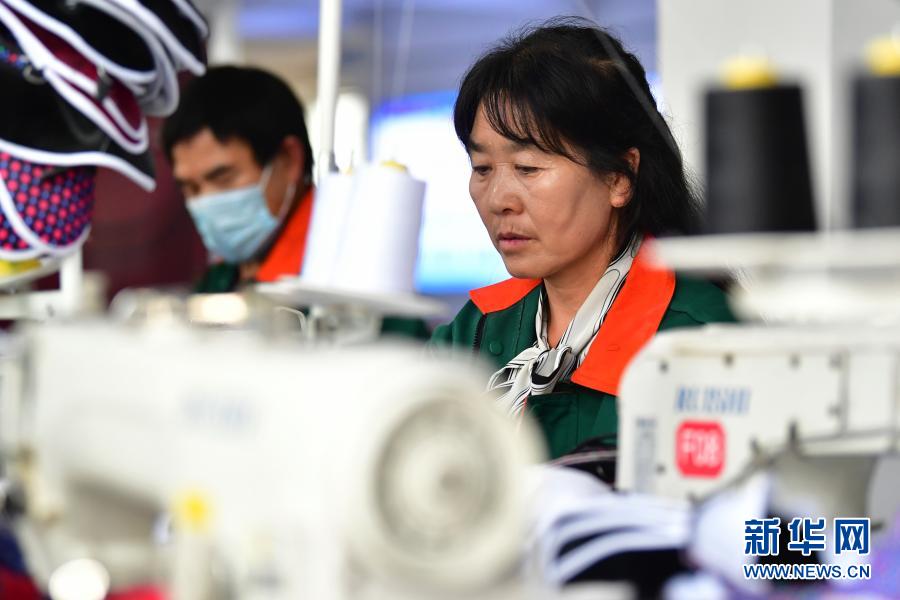 在臨夏回族自治州積石山縣,依托東西部扶貧協作平臺引進的服裝加工企業(yè)甘肅拓奇扶貧車間的員工在服裝加工生產線上作業(yè)(8月9日攝)。新華社記者 陳斌 攝