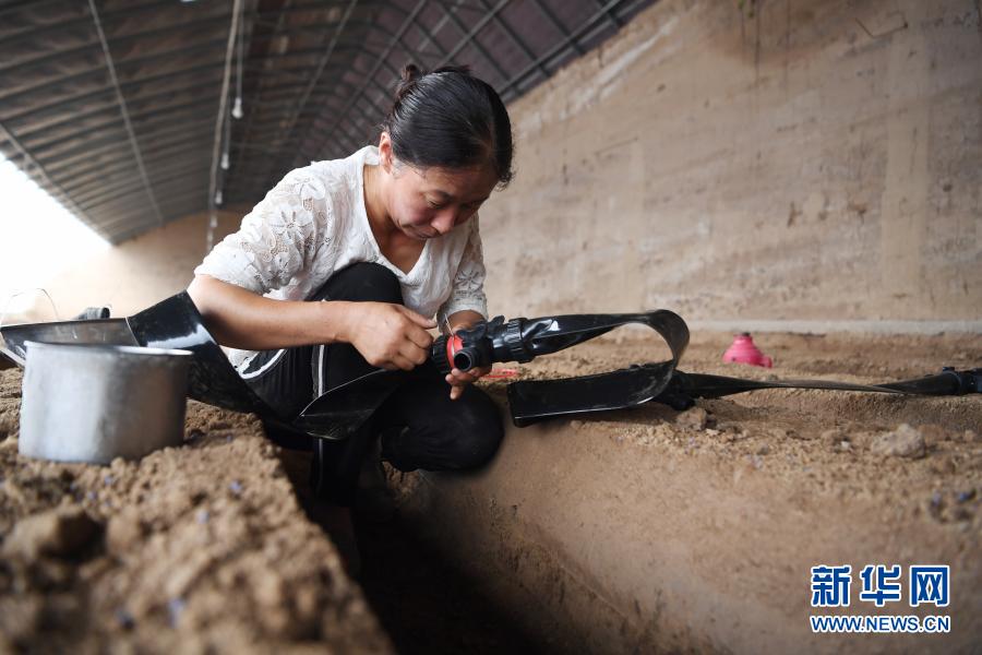 在臨夏回族自治州臨夏縣先鋒鄉(xiāng)前韓村,易地扶貧搬遷戶朱懷蘭在日光溫室內勞作(8月11日攝)。新華社記者 陳斌 攝