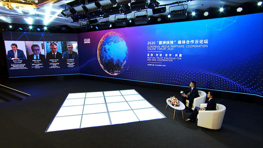 12月10日,中央廣播電視總臺以視頻連線的方式舉辦2020“歐洲伙伴”媒體合作云論壇。中宣部副部長、中央廣播電視總臺臺長、總編輯慎海雄出席并發(fā)表致辭,強(qiáng)調(diào)堅持多邊主義,加強(qiáng)對話交流,構(gòu)建中歐媒體伙伴關(guān)系。中央廣播電視總臺相關(guān)代表與來自歐洲地區(qū)16個國家25家媒體機(jī)構(gòu)的28名與會代表圍繞“互信·對話·合作·共贏”主題,相聚云端展開對話,共同發(fā)布《加強(qiáng)媒體合作聯(lián)合聲明》,積極推動中歐媒體加強(qiáng)合作、同舟共濟(jì)、團(tuán)結(jié)抗疫,提振國際社會信心。