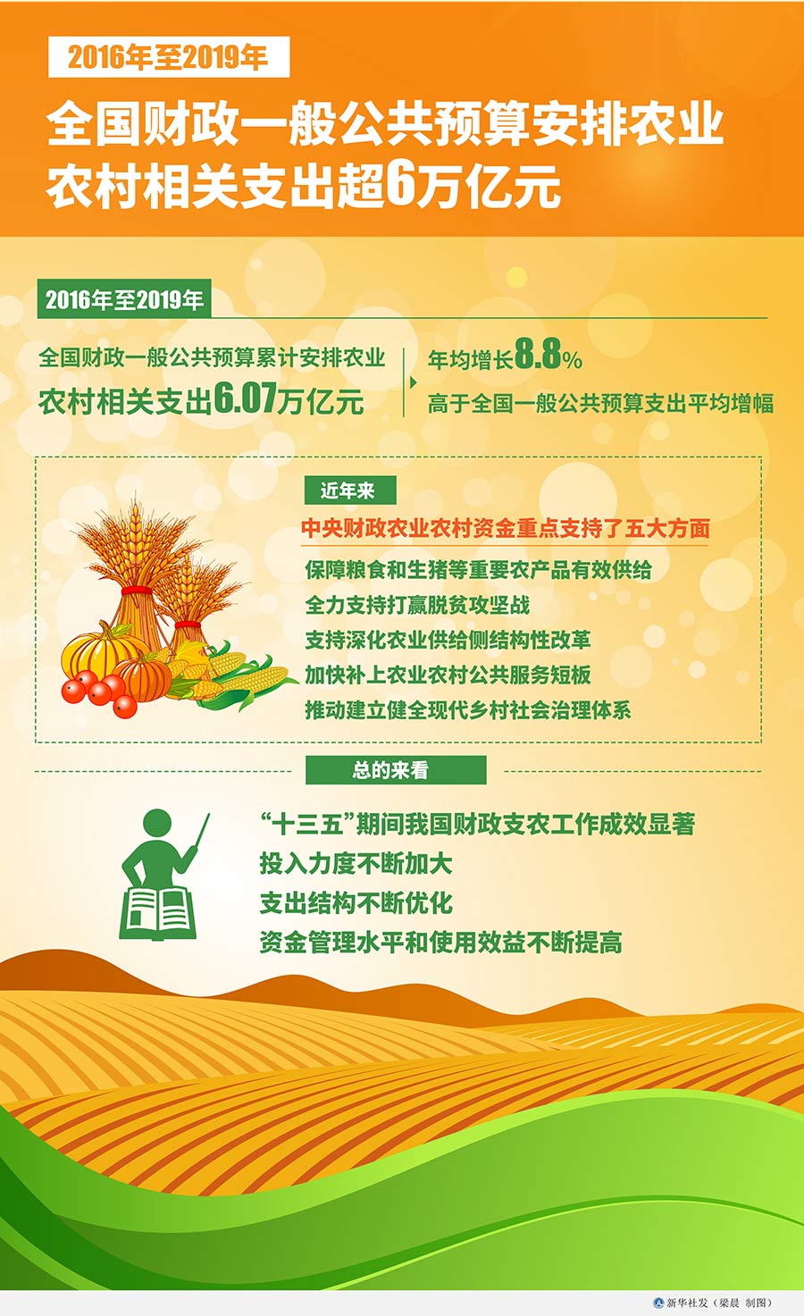 新華社北京12月23日電(記者申鋮)財(cái)政部部長劉昆23日表示,2016年至2019年,全國財(cái)政一般公共預(yù)算累計(jì)安排農(nóng)業(yè)農(nóng)村相關(guān)支出6.07萬億元,年均增長8.8%,高于全國一般公共預(yù)算支出平均增幅。