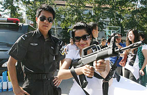 天津中小學(xué)開學(xué) 校園保安帶4斤裝備上崗