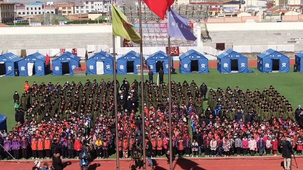 當(dāng)日,青海省果洛藏族自治州瑪多縣地震災(zāi)區(qū)中小學(xué)全面復(fù)課,來(lái)自瑪多縣民族寄宿制中學(xué)的八年級(jí)學(xué)生曲邁卓瑪與870多位同學(xué)一起,在帳篷學(xué)校迎來(lái)了復(fù)課。