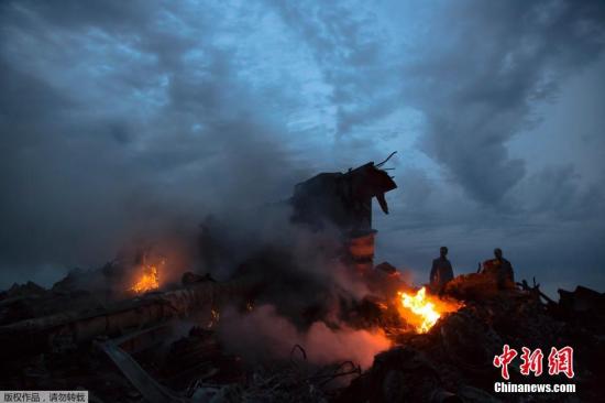 7月17日,馬來(lái)西亞一架載有295人的777客機(jī)在烏克蘭靠近俄羅斯邊界墜毀。圖為馬航波音777客機(jī)在頓涅茨克地區(qū)墜毀的現(xiàn)場(chǎng)。