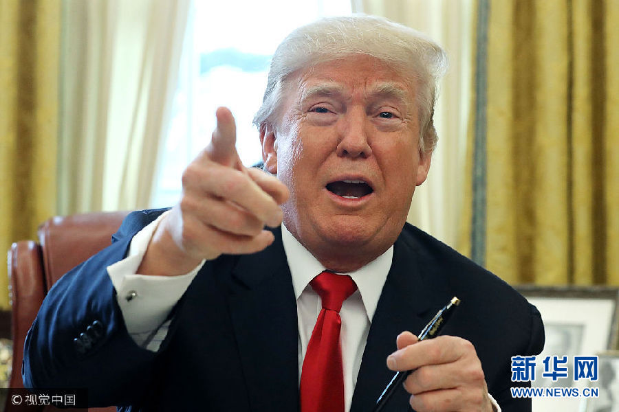 當(dāng)?shù)貢r(shí)間22日,美國(guó)華盛頓,美國(guó)總統(tǒng)特朗普在白宮的橢圓形辦公室簽署1.5萬(wàn)億美元稅改法案,此乃美國(guó)最近逾30年來(lái)最大規(guī)模減稅行動(dòng)。(圖片來(lái)源:視覺(jué)中國(guó))