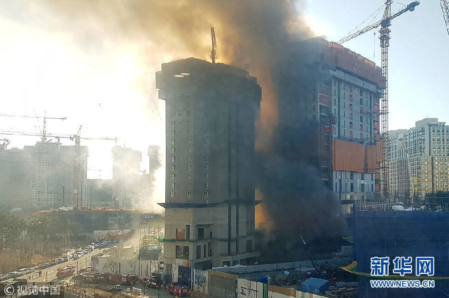 韓國水原市建筑工地發(fā)生火災(zāi) 現(xiàn)場濃煙滾滾