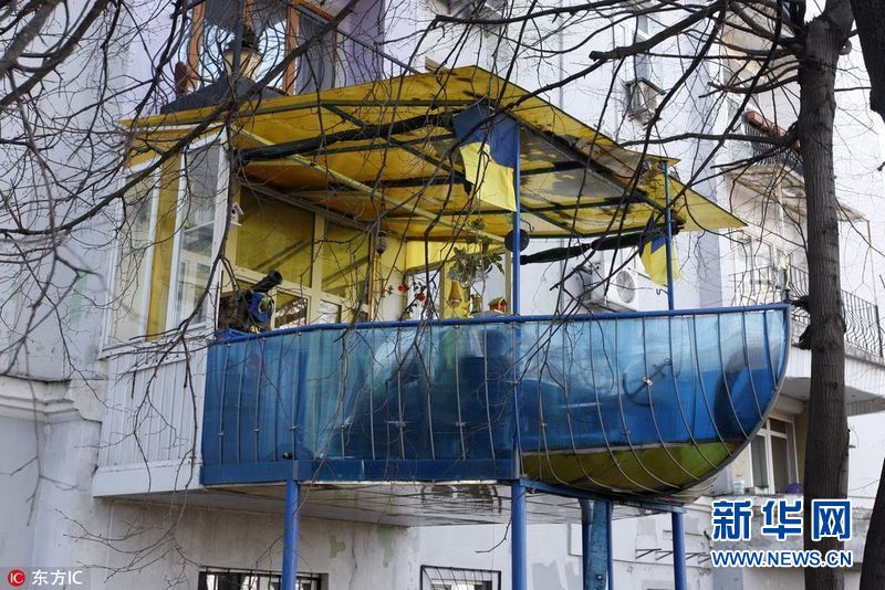 【帥!軍艦陽臺】2017年3月30日,烏克蘭基輔,72歲的老人Olexander Shkolnik曾是一名海軍少校。退役后,老人將自家陽臺打造成了軍艦?zāi)?,以紀念自己的海軍生涯。