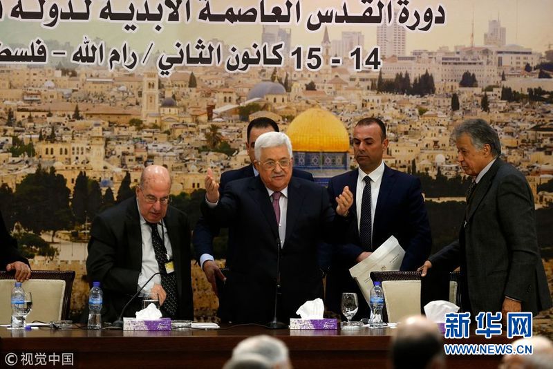 1月14日,約旦河西岸拉馬拉,巴勒斯坦總統(tǒng)阿巴斯在巴勒斯坦中央委員會會議上發(fā)表講話,并稱以色列已經(jīng)“終止”了奧斯陸協(xié)議。(圖片來源:視覺中國)