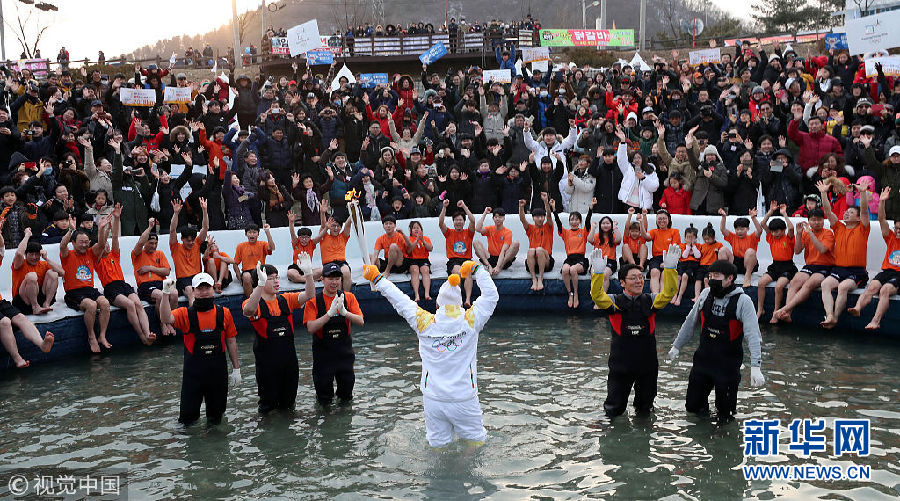 當?shù)貢r間1月21日,韓國江原道華川郡,奧運圣火傳遞儀式在華川山鱒魚慶典場地舉行。