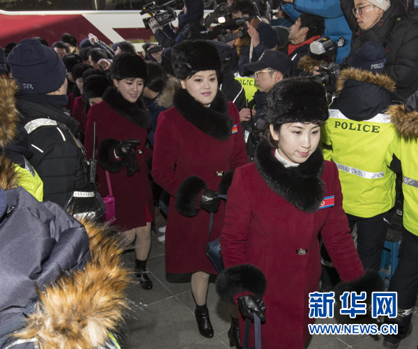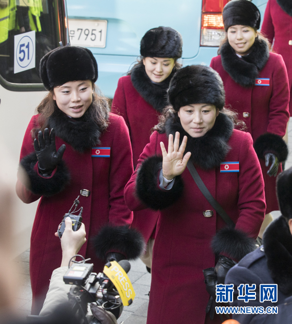 2月7日,朝鮮拉拉隊(duì)成員乘車到達(dá)韓國江原道麟蹄郡。當(dāng)日,參加平昌冬奧會(huì)的朝鮮拉拉隊(duì)、跆拳道示范團(tuán)、記者團(tuán)和民族奧林匹克委員會(huì)官員等一行280人經(jīng)由京義線陸路抵達(dá)韓國境內(nèi)。新華社發(fā)(李相浩攝)