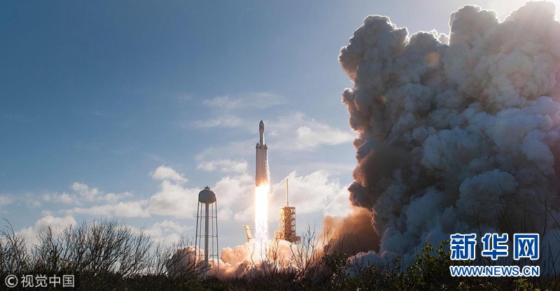 當(dāng)?shù)貢r(shí)間2018年2月6日,美國(guó)佛州卡納維拉爾角,美國(guó)重型運(yùn)載火箭“獵鷹重型”6日攜帶一輛特斯拉跑車發(fā)射升空。(圖片來(lái)源:視覺(jué)中國(guó))