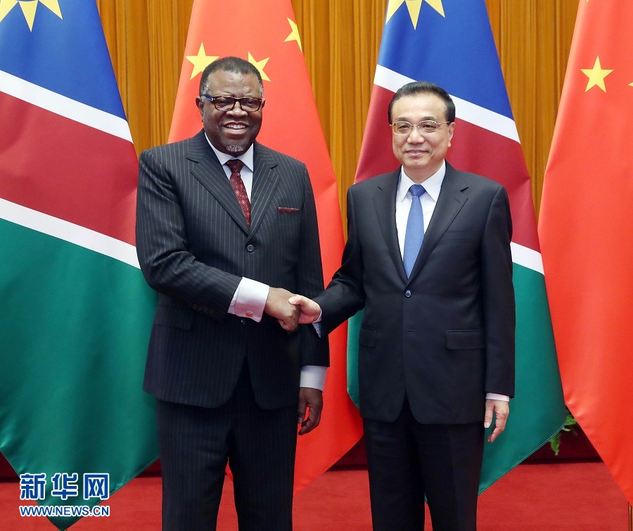 李克強表示,納米比亞是中國在非洲的重要合作伙伴。昨天,習(xí)近平主席同你舉行了富有成果的會談,將兩國關(guān)系提升為全面戰(zhàn)略合作伙伴關(guān)系。中方愿同納方鞏固政治互信,深化互利合作,加強在國際地區(qū)事務(wù)中的溝通協(xié)調(diào),開辟兩國關(guān)系更加美好的未來。