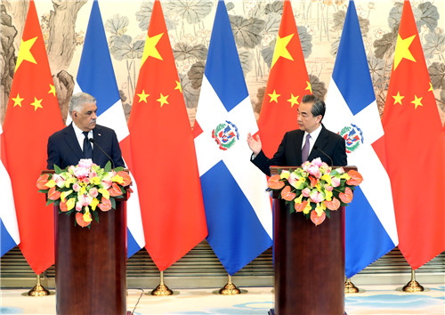 王毅表示,中國和多米尼加正式建交,標(biāo)志著兩國關(guān)系翻開了新的歷史篇章。從此,中國在拉美多了一位守望相助的好朋友,多米尼加在發(fā)展振興道路上有了一位互利合作的好伙伴,中多雙方將成為促進(jìn)南南合作、維護(hù)發(fā)展中國家共同利益的好兄弟。中國特色社會主義進(jìn)入了新時代,正在加快實現(xiàn)現(xiàn)代化進(jìn)程。同中國建交,意味著為多米尼加自身發(fā)展帶來前所未有的巨大機(jī)遇。隨著雙方合作潛力的不斷釋放,這一機(jī)遇將迅速轉(zhuǎn)化成現(xiàn)實,為1000多萬多米尼加人民持續(xù)帶來實實在在的利益和福祉。多米尼加是中美洲和加勒比地區(qū)最大經(jīng)濟(jì)體,在地區(qū)事務(wù)中有著重要影響,中多建交也將為中國和拉美的整體合作注入新的動力,開辟新的空間。