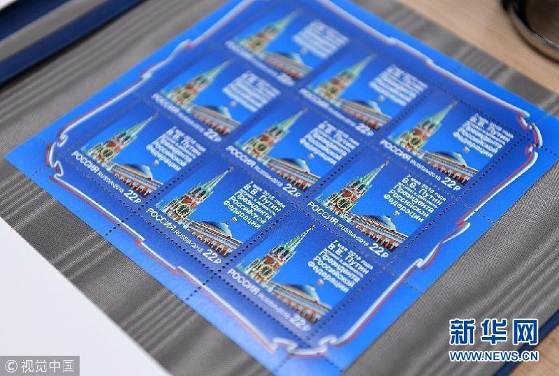當(dāng)?shù)貢r(shí)間2018年5月7日,俄羅斯莫斯科,俄羅斯發(fā)行普京就職紀(jì)念郵票。(圖片來(lái)源:視覺(jué)中國(guó))