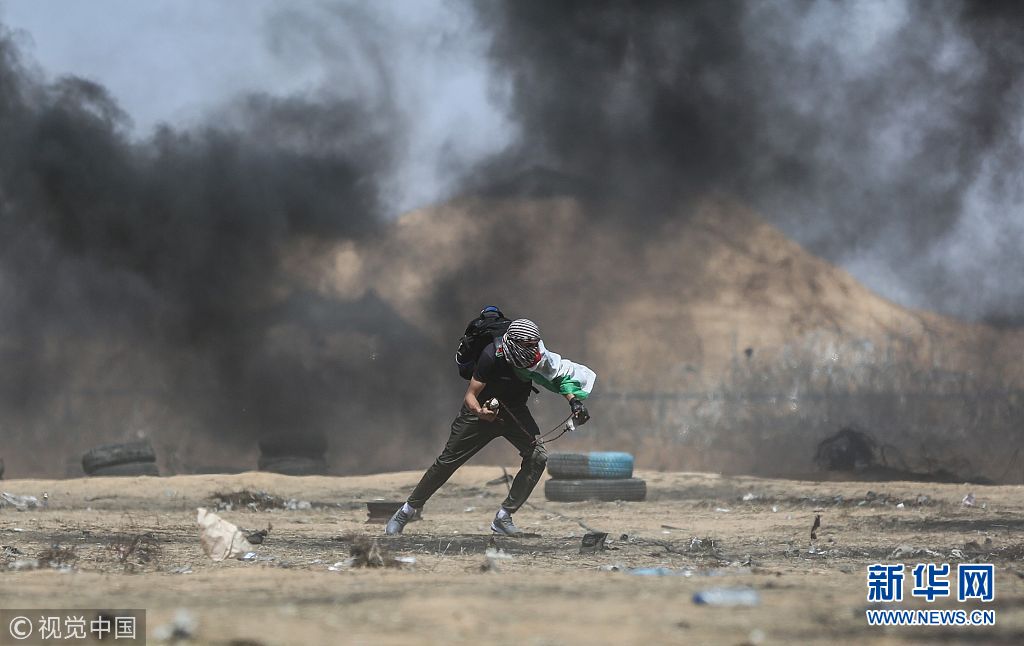 當(dāng)?shù)貢r(shí)間2018年5月11日,加沙地帶,巴勒斯坦民眾游行要求回歸權(quán),與以色列安全部隊(duì)發(fā)生沖突。(圖片來源:視覺中國(guó))
