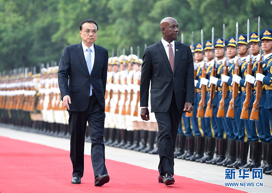 5月14日,國(guó)務(wù)院總理李克強(qiáng)在北京人民大會(huì)堂同來(lái)華進(jìn)行正式訪問(wèn)的特立尼達(dá)和多巴哥總理羅利舉行會(huì)談。會(huì)談前,李克強(qiáng)在人民大會(huì)堂東門外廣場(chǎng)為羅利舉行歡迎儀式。新華社記者 燕雁 攝