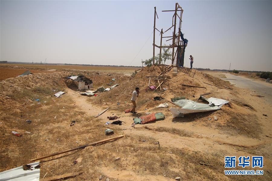 5月27日,在加沙地帶拉法地區(qū),巴勒斯坦人查看遭到以軍炮擊的軍事哨所。以色列坦克27日炮擊加沙地帶南部拉法地區(qū),致兩名巴勒斯坦人死亡,另有一人受傷。 新華社發(fā)(哈立德·奧馬爾 攝)