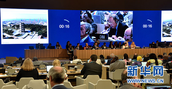 6月29日,在巴林首都麥納麥,第42屆世界遺產(chǎn)委員會(huì)會(huì)議審議中國(guó)申報(bào)的“古泉州(刺桐)史跡”文化遺產(chǎn)項(xiàng)目。新華社記者 王波 攝