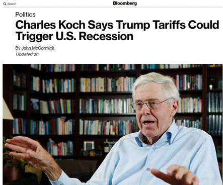 而在上周末剛剛結(jié)束的這么一場(chǎng)為期三天、并有數(shù)百人參加的活動(dòng)上,科赫兄弟中年長(zhǎng)的哥哥查爾斯·科赫就公開(kāi)宣布他對(duì)美國(guó)政府的貿(mào)易戰(zhàn)行為很擔(dān)憂(yōu),認(rèn)為美國(guó)對(duì)中國(guó)等多個(gè)國(guó)家揮舞的關(guān)稅大棒將令美國(guó)經(jīng)濟(jì)面臨“災(zāi)難性”的衰退風(fēng)險(xiǎn)。