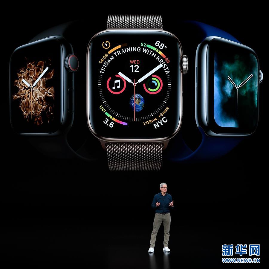 9月12日,在美國(guó)加利福尼亞州丘珀蒂諾市舉行的蘋(píng)果新品發(fā)布會(huì)上,蘋(píng)果公司首席執(zhí)行官蒂姆·庫(kù)克介紹新推出的第四代蘋(píng)果手表。?新華社發(fā)
