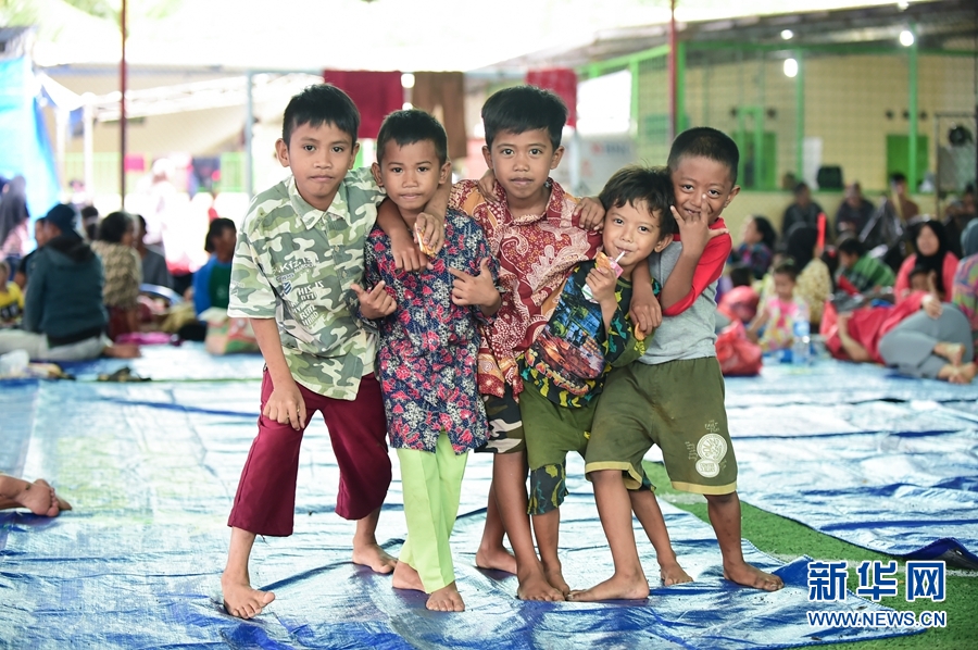 12月25日,幾名男孩在印度尼西亞萬丹省板底蘭縣的災(zāi)民安置點玩耍。新華社記者杜宇攝