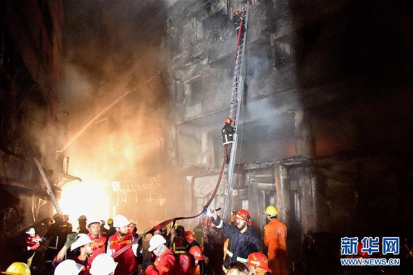達卡市消防部門從20日夜間開始滅火工作到21日。消防部門官員馬赫福茲·里文對新華社記者表示,目前仍有37支消防隊在現(xiàn)場滅火。