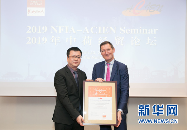 ? 新華網(wǎng)海牙3月25日電(姜慧)荷蘭國(guó)家外商投資局近日舉辦“2019年中荷經(jīng)貿(mào)論壇”,并在活動(dòng)上向全荷蘭中資企業(yè)協(xié)會(huì)頒發(fā)“經(jīng)貿(mào)使者獎(jiǎng)”,以表彰該協(xié)會(huì)所代表的中資企業(yè)在荷蘭的成功投資和對(duì)荷蘭投資環(huán)境的認(rèn)可,以及為荷蘭經(jīng)濟(jì)作出的寶貴貢獻(xiàn)。