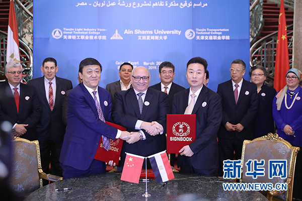 新華社開羅3月31日電(記者趙家淞 李碧念)天津輕工職業(yè)技術(shù)學(xué)院、天津交通職業(yè)學(xué)院和埃及艾因夏姆斯大學(xué)31日在埃及首都開羅簽署合作備忘錄,三校將共建埃及魯班工坊。
