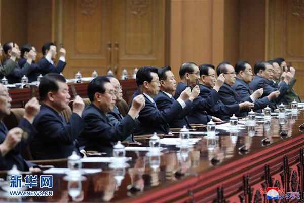 這張朝中社4月12日提供的照片顯示,朝鮮最高領(lǐng)導(dǎo)人金正恩在11日的會(huì)議中被推舉為朝鮮國(guó)務(wù)委員會(huì)委員長(zhǎng)。新華社/朝中社