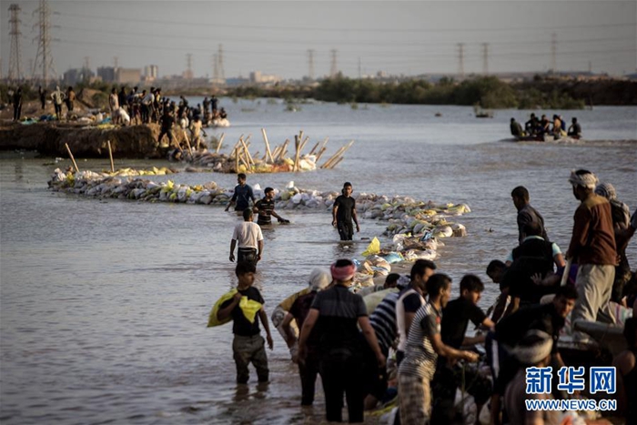 4月11日,在伊朗阿瓦士附近,人們?cè)诖罱ǚ篮榈?。近期,伊朗境?nèi)持續(xù)洪澇災(zāi)害。新華社發(fā)(艾哈邁德·哈拉比薩斯 攝)