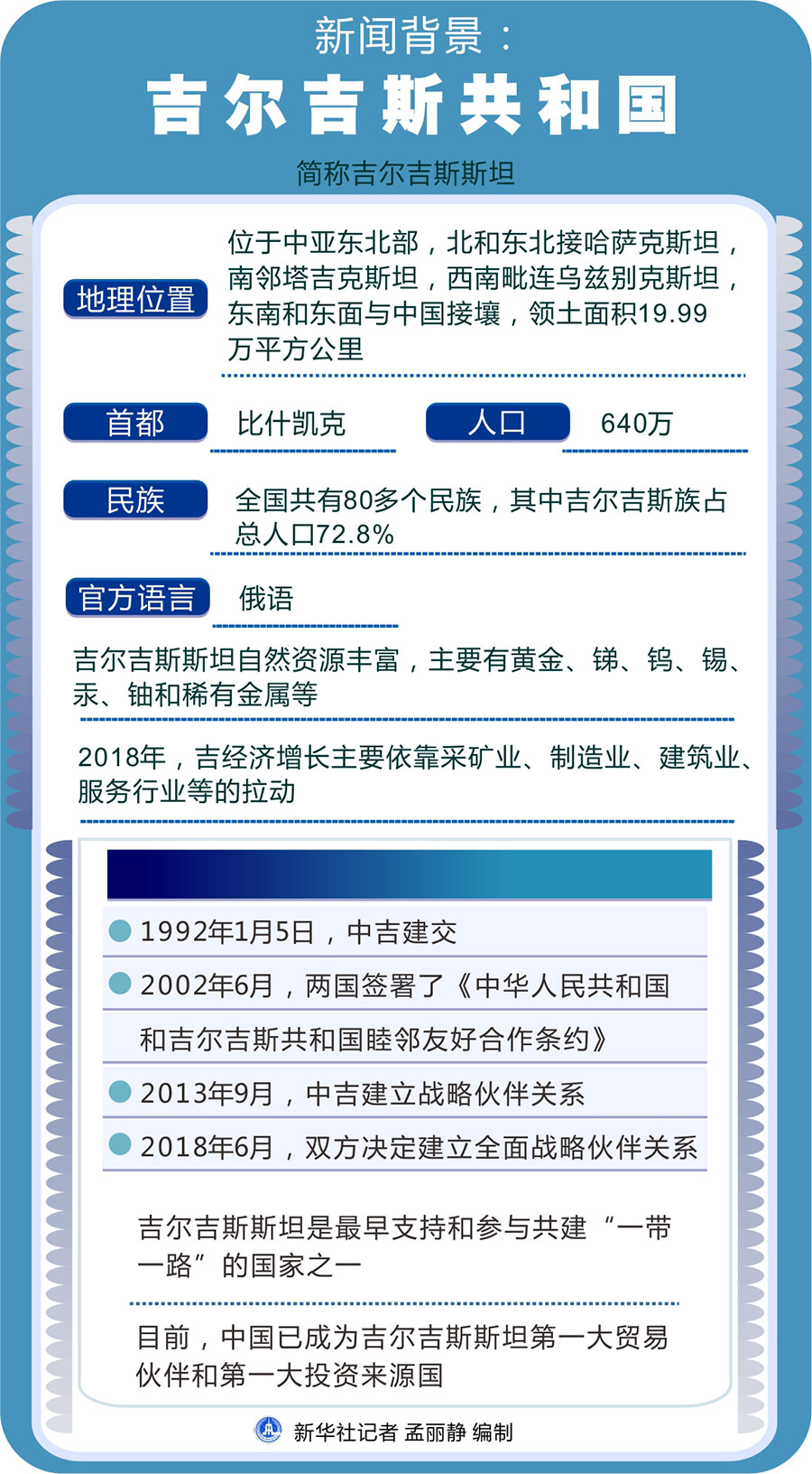 新華社北京6月10日電 新聞背景:吉爾吉斯共和國(guó)