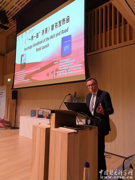 趙劍英首先對《“一帶一路”手冊》英文版的出版發(fā)行表示祝賀,作為《“一帶一路”手冊》中文版的發(fā)起者和出版方,他介紹,由中國社會科學出版社和英國羅得里奇出版社共同策劃的《“一帶一路”手冊》是全球首部以“一帶一路”倡議為主要內(nèi)容的百科讀本。這部手冊在第二屆一帶一路國際合作高峰論壇現(xiàn)場展示中獲得熱烈反響。內(nèi)容涉及“一帶一路”倡議的歷史傳承、產(chǎn)生與框架、“五路”、“五通”、六大經(jīng)濟走廊、中國特色大國外交理念、國際上相關行動計劃等11個主要部分,涵蓋近年來與“一帶一路”有關的117個詞條。這部手冊全面、完整、系統(tǒng)地展現(xiàn)“一帶一路”倡議本身及與之有關的概念和領域,是迄今為止一帶一路理論和實踐初步成果的階段性匯總。為促進國際社會深刻理解一帶一路偉大戰(zhàn)略構想提供了學術引導價值。探索一帶一路的規(guī)律,建立規(guī)范型理論框架和恰逢其時,英文版的出版必然會為一帶一路匯聚廣泛的國際共識,為構建人類命運共同體添磚加瓦。據(jù)趙劍英社長介紹,社科出版社在一帶一路研究英文譯介出版發(fā)行的基礎上,未來還將增進西語、葡語、阿拉伯語、俄語等一帶一路沿線語種譯介出版,為一帶一路行穩(wěn)致遠提供學理支撐。