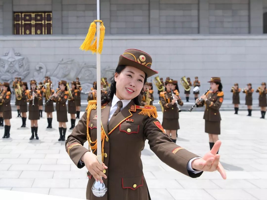 朝方在機(jī)場舉行隆重歡迎儀式。在21響禮炮聲中,軍樂隊(duì)奏中朝兩國國歌,習(xí)近平在金正恩陪同下檢閱了朝鮮人民軍三軍儀仗隊(duì),并觀看了分列式表演。