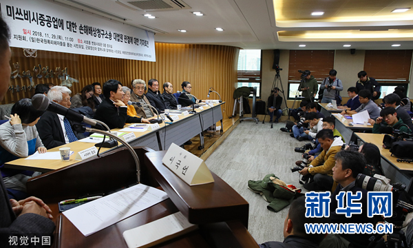 2018年11月29日,韓國最高法院就日本殖民統(tǒng)治朝鮮半島期間被日本三菱重工強征的原勞工遺屬,以及前“朝鮮女子勤勞挺身隊”隊員狀告該公司的2起索賠案作出判決,勒令日本三菱重工支付賠償。(圖片來源:視覺中國)