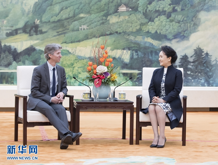 1月8日,國家主席習(xí)近平夫人彭麗媛在北京會(huì)見美國茱莉亞學(xué)院院長(zhǎng)沃澤爾。 新華社記者 王曄 攝