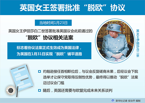 圖表:英國女王簽署批準(zhǔn)“脫歐”協(xié)議 新華社記者 安治平 編制