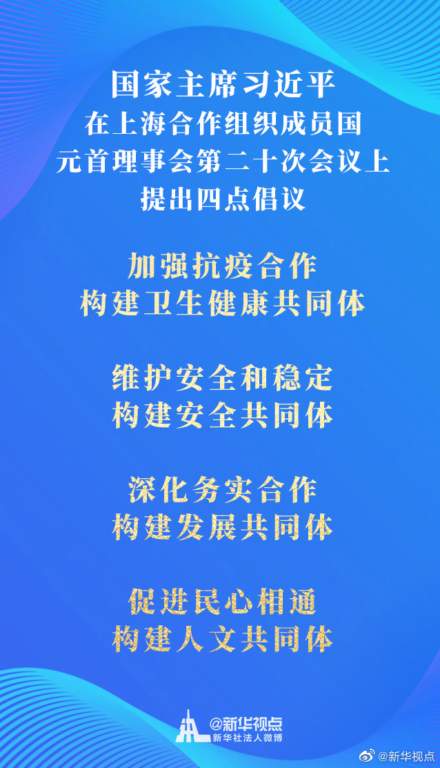 海報 | 習(xí)近平主席在上海合作組織成員國元首理事會第二十次會議上提出四點(diǎn)倡議