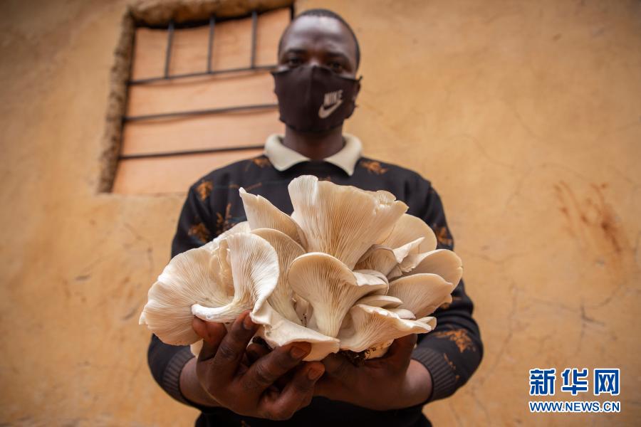 9月9日,在盧旺達(dá)首都基加利,埃馬紐埃爾·阿希馬納手捧食用菌。新華社發(fā)(西里爾·恩德格亞攝)