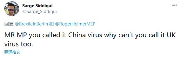 不少網(wǎng)友指出了赫爾默的雙標。“議員先生,你管這(新冠病毒)叫‘中國病毒’,為什么不也把它叫做英國病毒?”