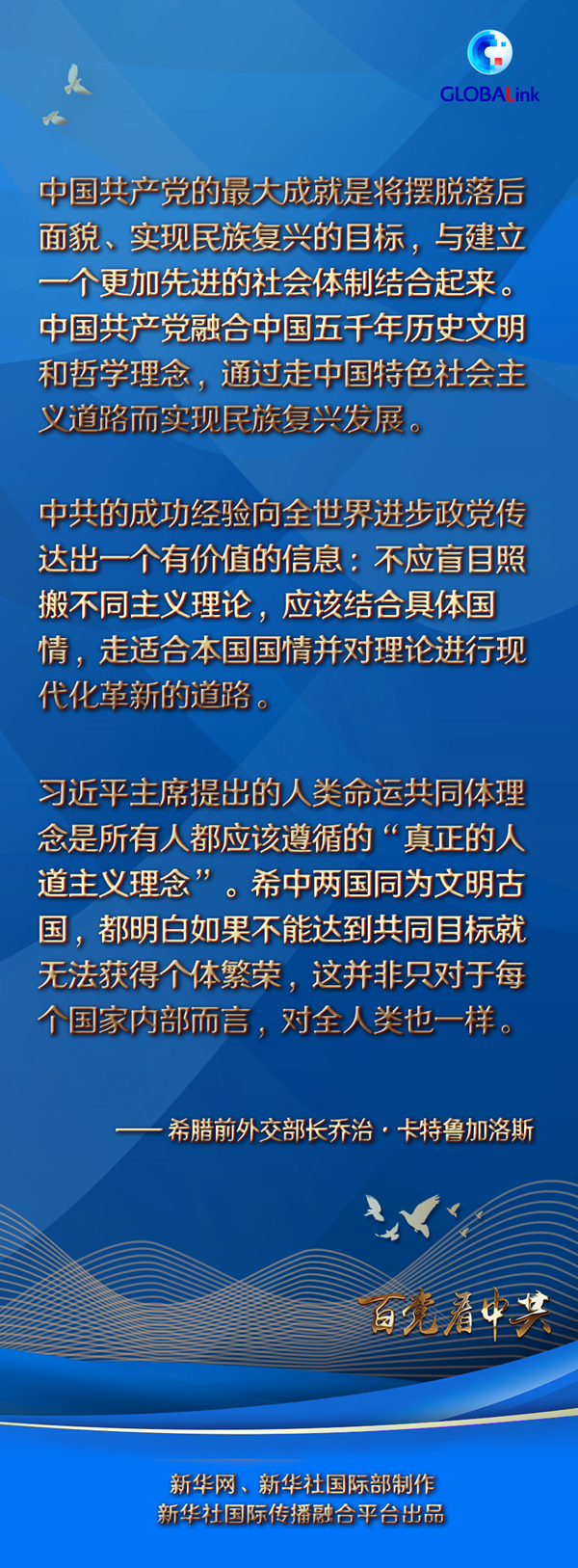 在中共百年華誕之際,卡特魯加洛斯向中國(guó)共產(chǎn)黨和中國(guó)人民送上祝福:“我相信中國(guó)人民取得的這些矚目成就還將繼續(xù)下去,相信中國(guó)共產(chǎn)黨的下一個(gè)百年能給中國(guó)人民帶來(lái)更加光明和美好的未來(lái)。”