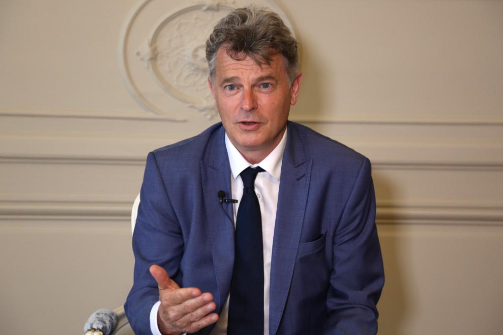 6月10日,法國共產(chǎn)黨全國書記法比安·魯塞爾在巴黎接受新華社記者采訪。新華社記者 唐霽 攝